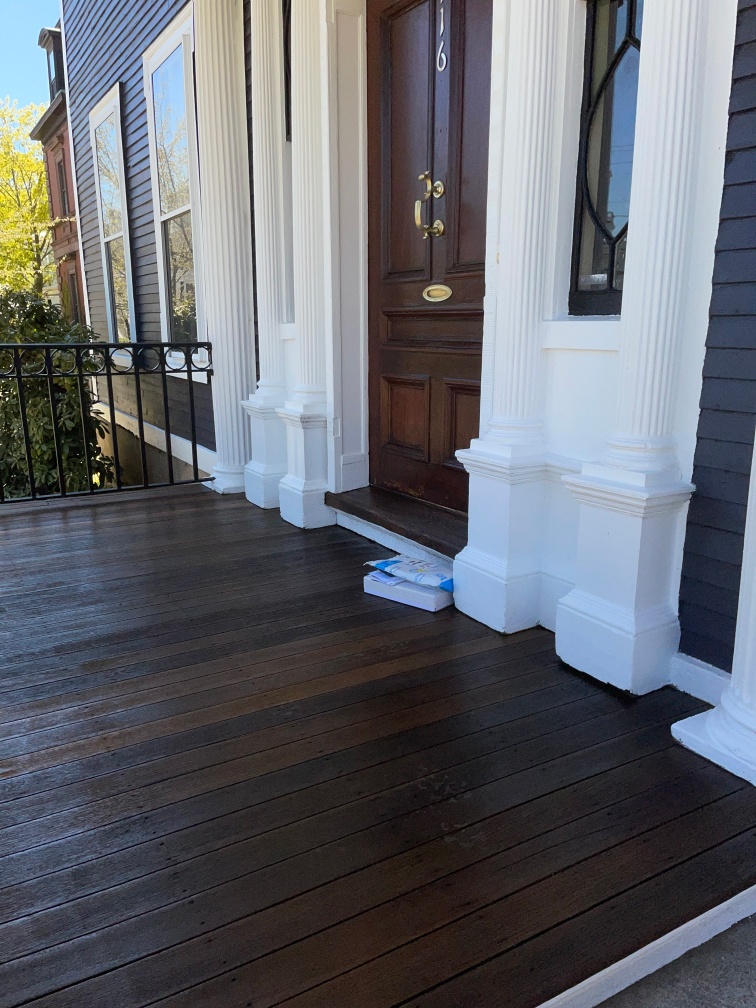We also stripped a beautiful historic original front door of all existing paint finishes thru the years too reveal a nice black walnut finish raised panel door and stained with PPG.